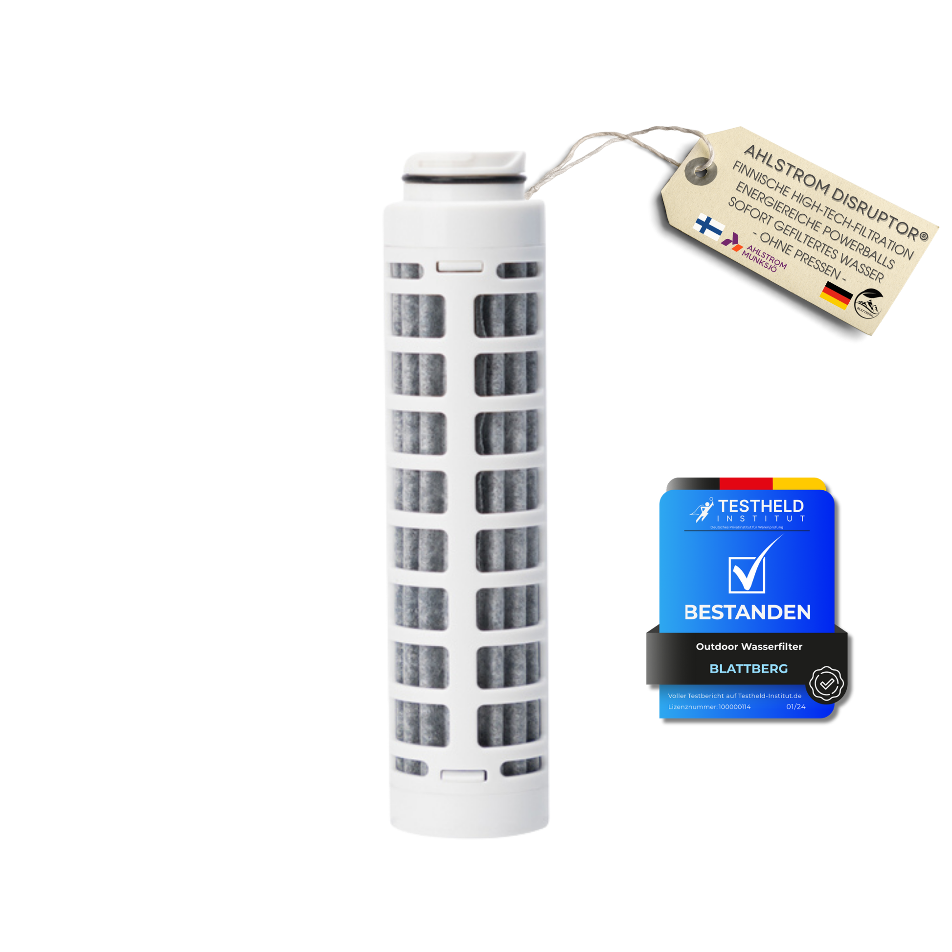 Sichere dir jederzeit sauberes Wasser mit dem original Blattberg® Ersatzfilter – passend für unsere Outdoor Wasserfilterflasche. Die leistungsstarke Disruptor® Elektroadsorptions-Technologie (Grade 5289 von Ahlstrom) entfernt zuverlässig Schadstoffe aus natürlichen und städtischen Wasserquellen – ganz ohne Chemie, Strom oder Wartezeit.